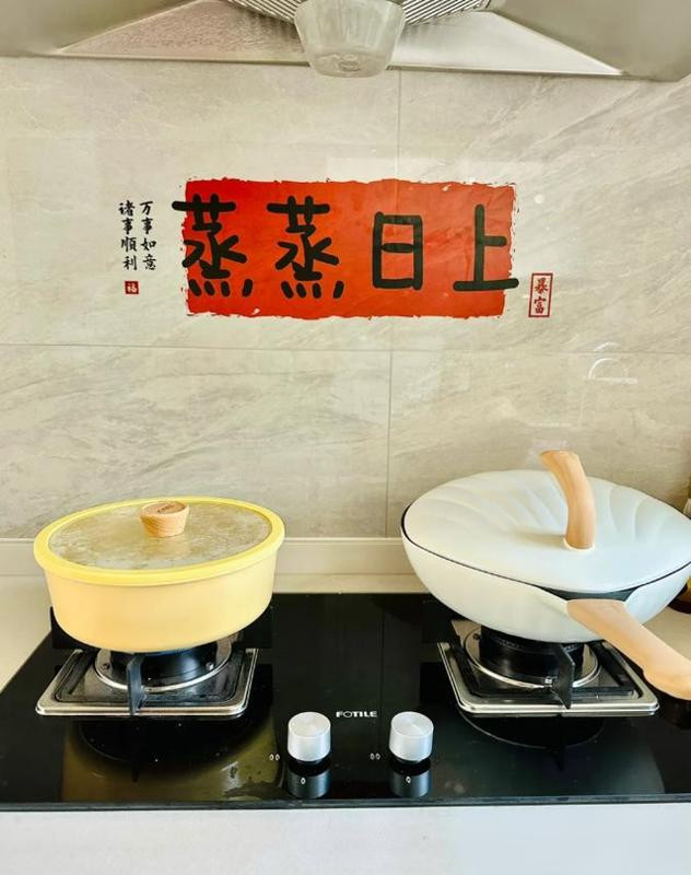 厨房墙面就得光溜好打理,别为了颜值牺牲实用性。
