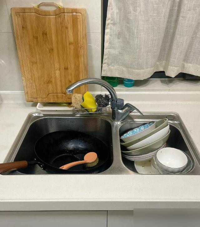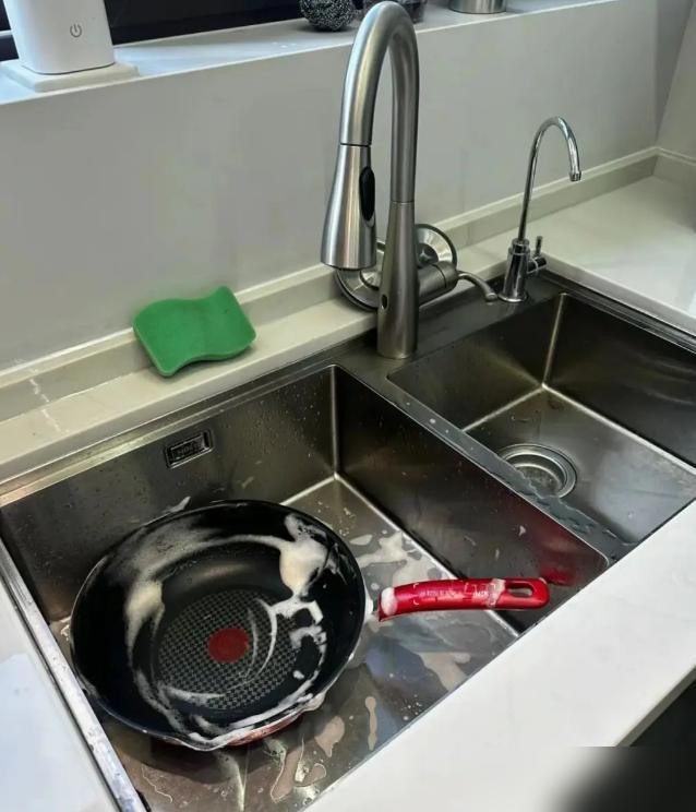 换成大单槽后才叫真香,锅碗瓢盆一股脑儿塞进去,水流哗哗冲得干净利落,省时省力还省空间。